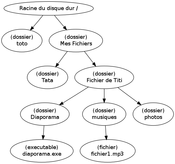 Pour acceder à votre musique vous partez de la racine du disque (/) vous allez dans le dossier musiques et vous ouvrez le fichier fichier1.mp3